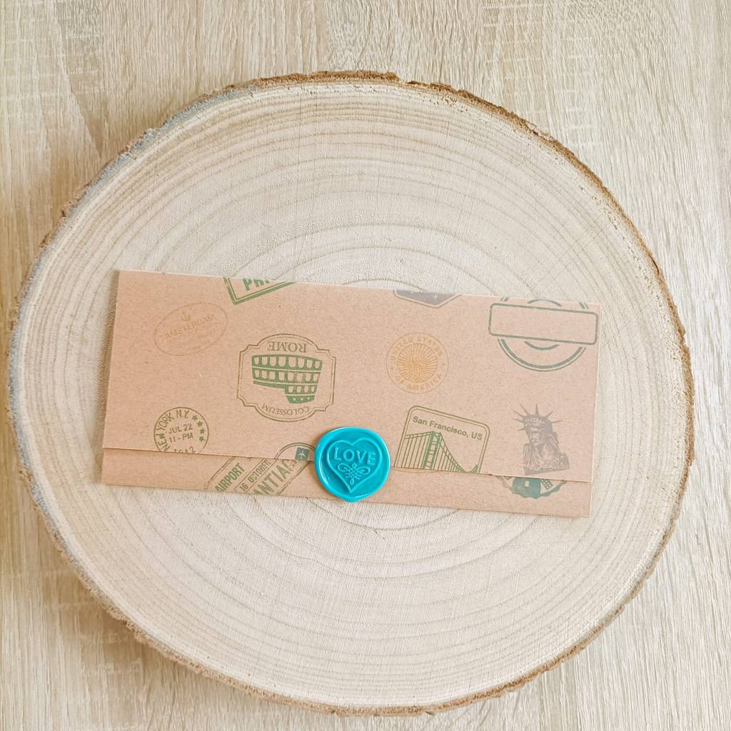 - Acabamento: Fechado com um selo de lacre azul turquesa com a palavra “LOVE”, simbolizando o compromisso que guia esta viagem.