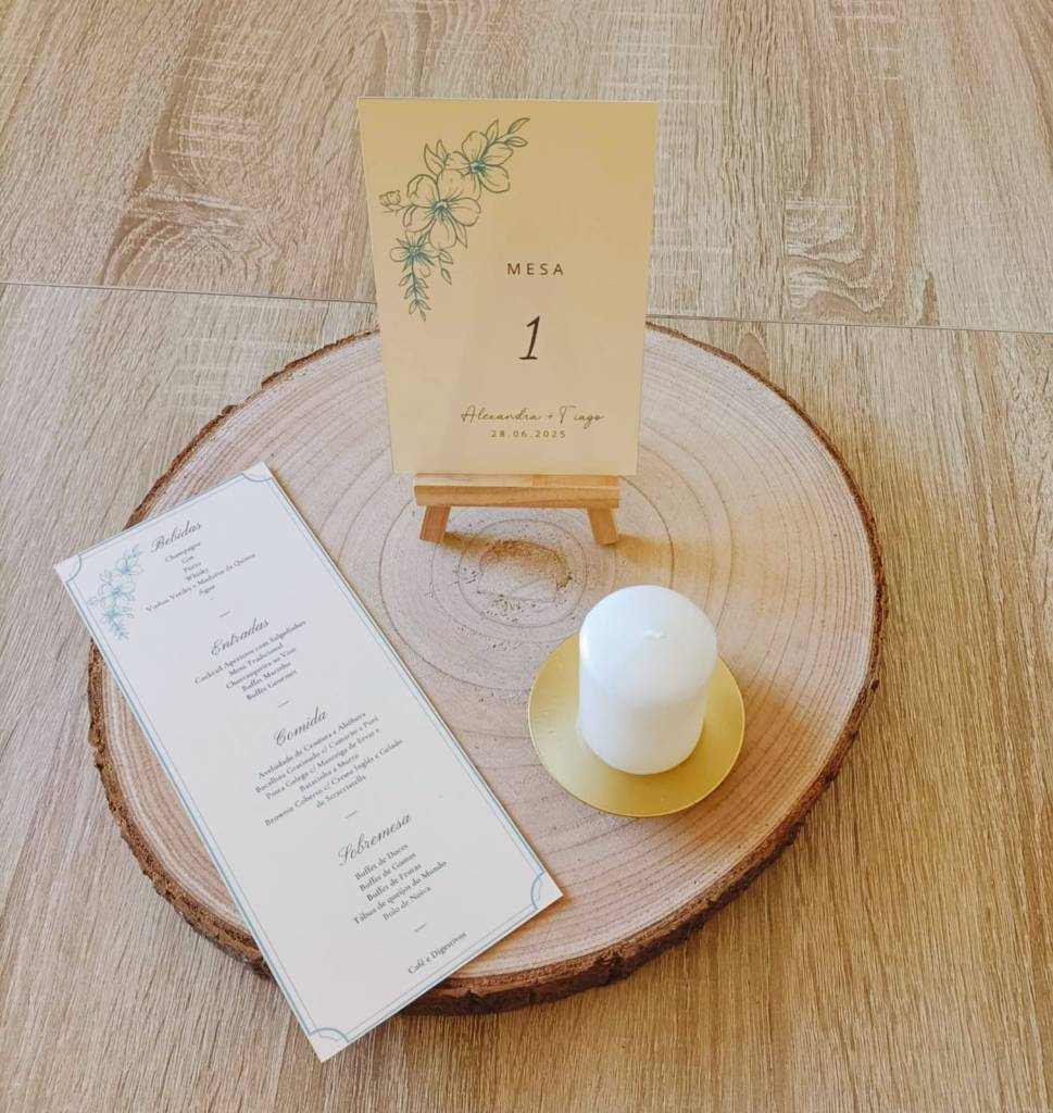 Transforme a mesa do seu banquete num cenário de sonho. Este kit foi desenvolvido para noivos que valorizam a continuidade estética, garantindo que cada elemento — da ementa à interação digital — conte a mesma história de elegância e atenção ao detalhe.