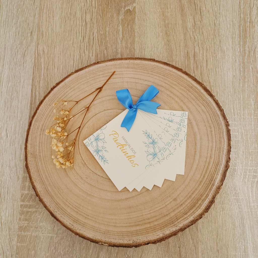 - Papel: Produzido em cartolina de 220g, garantindo uma textura firme e uma durabilidade superior para que os padrinhos o possam guardar como recordação.