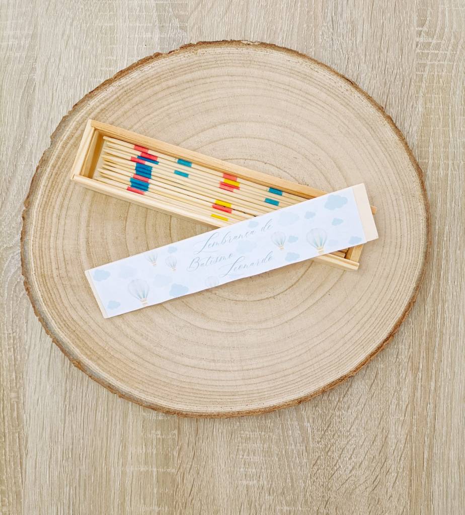 Uma lembrança clássica e intemporal que incentiva o convívio e a destreza. Apresentado numa caixa de madeira natural, este jogo torna-se uma recordação elegante e divertida para convidados de todas as idades, especialmente em batizados e aniversários.